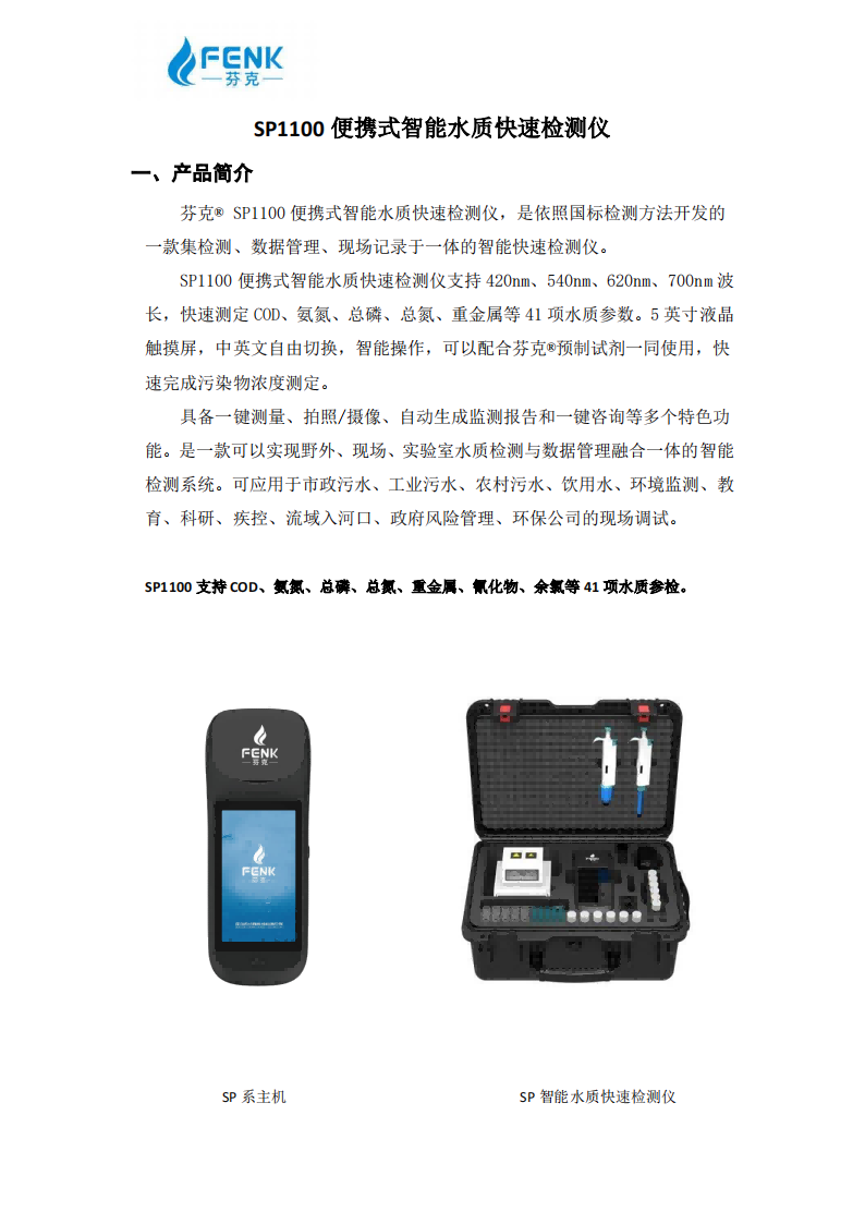 产品标题:SP-1100 便携式智能水质快速检测仪